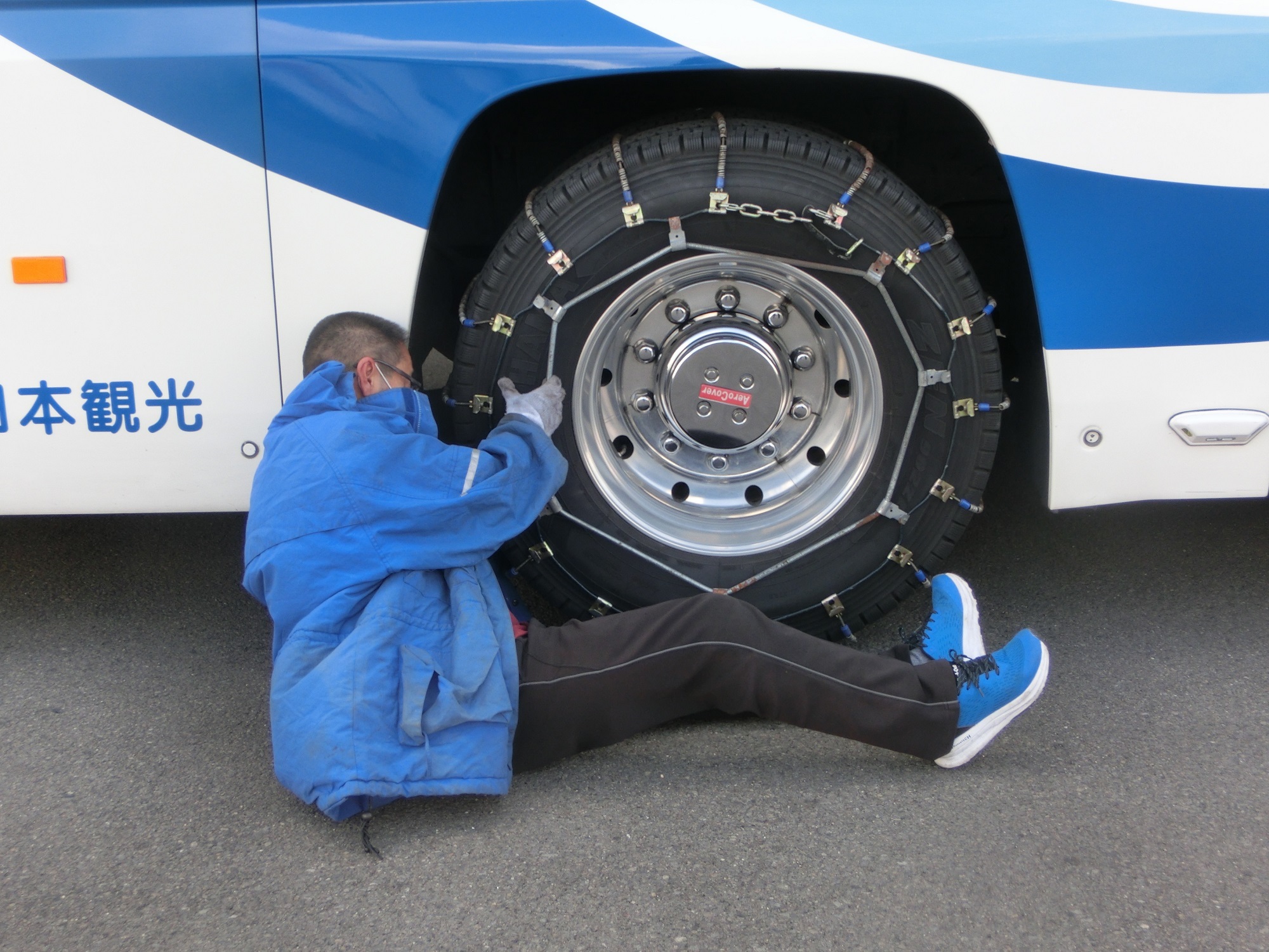 今年一番の寒波、普段からチェーン装着がスムーズに出来るように実践します