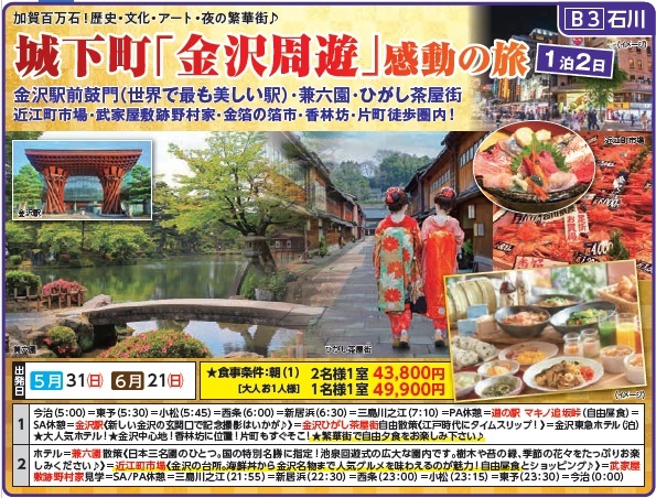 B3 城下町「金沢周遊」感動の旅1泊2日